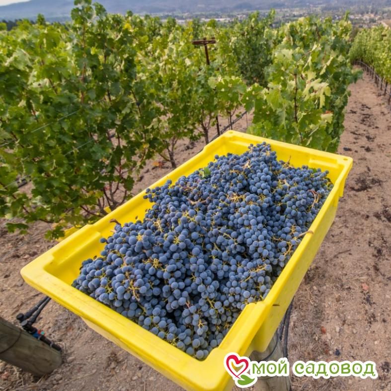 Виноград Каберне Совиньон – среднепоздний сорт, съёмная зрелость наступает через 140-145 дней. Тёплой и долгой осенью вегетационный период увеличивается до 160-165 дней. Один из самых популярных сортов, созревающий в конце сентября – начале октября, из которого получают насыщенное терпкое вино с легким ароматом черной смородины. Темно-синие ягоды мелкие, округлые. Кисти, имеющие характерную особенность висеть длительный срок без загнивания, набирают максимальный процент сахаристости. Кусты абсолютно неприхотливы: не боятся болезней, морозоустойчивы. Магазин Мой Садовод, рекомендации по уходу Уход за виноградом сводится к регулярным поливам в сухую погоду, подкормкам и формированию куста. Для подкормки используют минеральные и органические удобрения (перепревший навоз, компост). Ранней весной кусты виноград поливают полным минеральным удобрением, растворенным в воде, перед цветением такую подкормку повторяют. Перед созреванием вносят фосфорно-калийные удобрения, а после сбора урожая проводят подкормку калием для повышения зимостойкости растений. Кроме того для лучшего вызревания лозы рекомендуется удаление пасынков и прищипывание верхушек в начале сентября. Формирование куста Винограда. Для формирования виноградных кустов необходимо установить надежную опору. Самая простая представляет собой два столба с несколькими рядами проволоки между ними. По мере роста побеги подвязывают к проволоке, задавая им нужное направление. Формирование куста винограда начинают с первого года, оставляя не более двух здоровых побегов у основания, остальные выламывают. На второй год на кусте оставляют по три почки на каждом побеге, на третий год на каждом плече оставляют 2-3 сильных побега, остальные удаляют. Пожалуйста, помните, что транспортировка и пересадка — стресс для растения. Перед высадкой в открытый грунт обработайте корневую систему стимулятором роста. С заботой о растениях, Мой Садовод. В нашем интернет-магазине вы сможете купить Винные сорта винограда Так же возможно вас заинтересуют Виноград Каберне барон и Виноград Мускат Блау