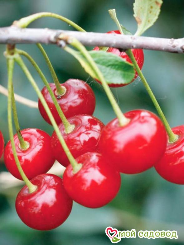 Очень привлекательна обильным плодоношением и красотой куста с широкоовальной кроной до 1,8 м высотой. В период созревания ветви буквально усыпаны нарядными плодами, эффектно контрастирующими на тёмно-зелёном фоне морщинистых, с сильным опушением и городчатым краем листьев. Ягоды рубиново-красные с лёгким, едва заметным опушением, довольно крупные массой около 4 г, сочные, отличного вкуса, по содержанию витамина С почти вдвое превосходят обычную вишню и яблоки. Сорт среднего срока созревания, засухоустойчив, зимостойкий, относительно устойчив к болезням. В нашем интернет-магазине вы сможете купить Саженцы вишни Так же возможно вас заинтересуют Вишня Осенняя и Вишня Осенняя Вировская .